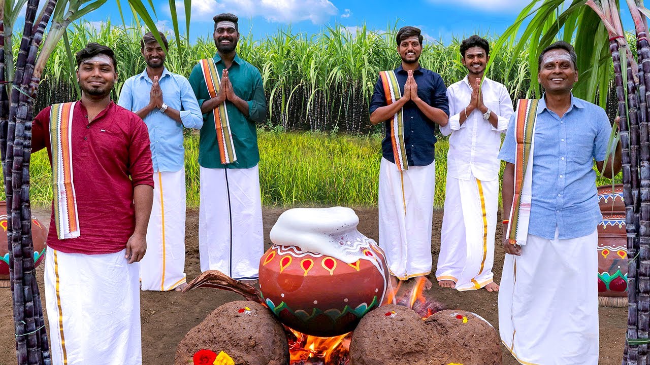 The families come together to offer prayers and celebrate with traditional dance and music and the entrances of the houses are decorated with some decorate live patterns (Kolams) made of rice flour.